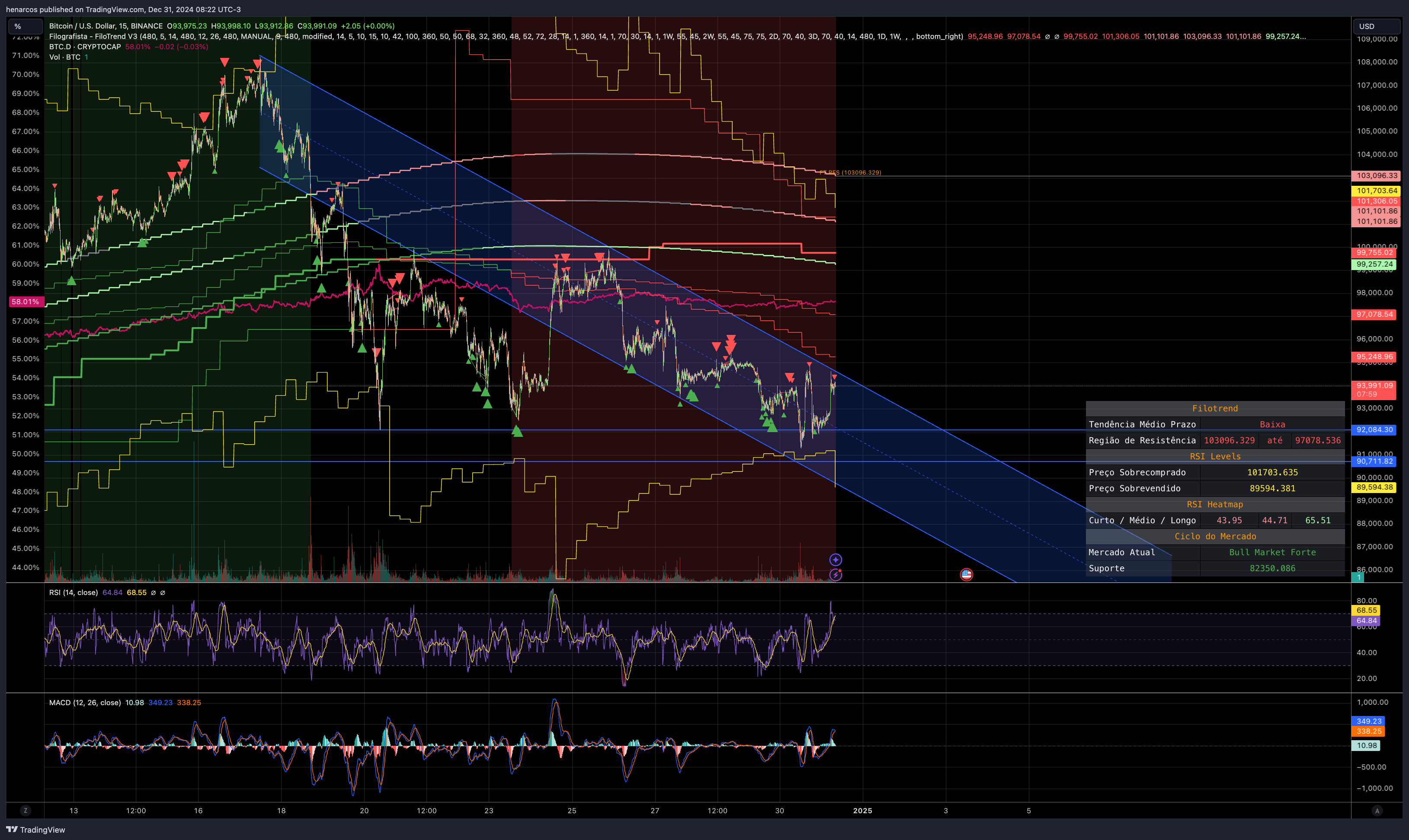 Después de un fondo confirmado el 20/12 y el 23/12 (92k), los tops llegaron creando resistencia (<100k). Luego, dos gotas de más del 4%. Si la tercera caída es del mismo tamaño, desafiaremos el soporte que ha estado llegando desde el 26/11 (90k). Ahora es el momento de seguir el canal y ver las pruebas de 92k y 90k. Es decir, si no va de lado durante otros dos o tres días, que es lo que ocurrió en las últimas pequeñas caídas, periodo en el que el precio recuperó la mitad de la caída anterior.